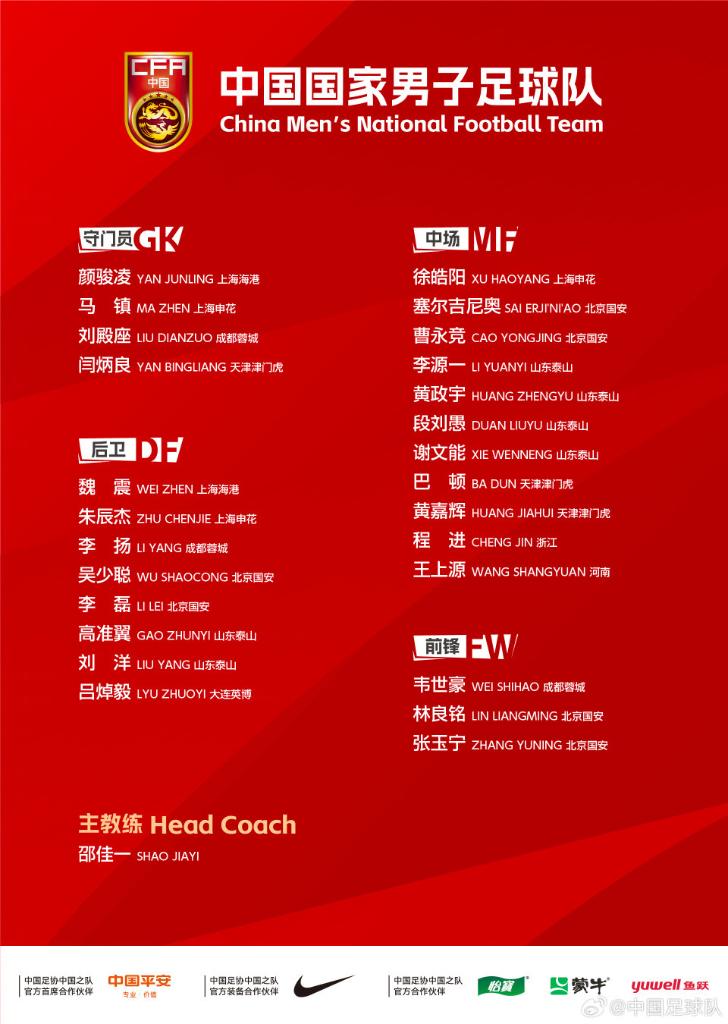 由於U23國足將在1月赴沙特阿拉伯參加U23亞洲盃,本期國足集訓並未招入王鈺棟、胡荷韜等23歲以下球員。集訓名單中,張玉寧、韋世豪、朱辰傑、塞爾吉尼奧等主力球員在列,李揚等四人則是首次入選。此前擔任國足隊長的王大雷未進入名單。