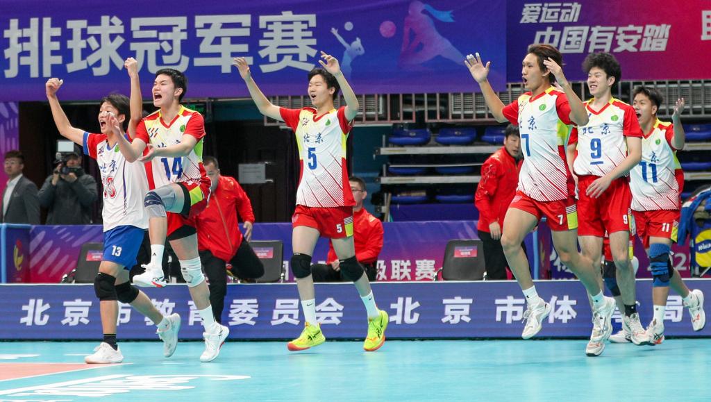 ↑2025年12月28日,北京景山學校隊在奪得北京市中小學生排球冠軍賽高中男子組冠軍後慶祝