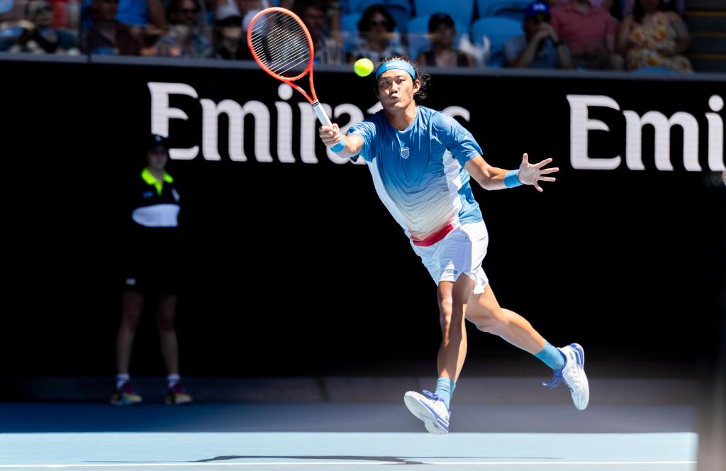 1月18日,張之臻在比賽中回球。新華社發(胡涇辰 攝)