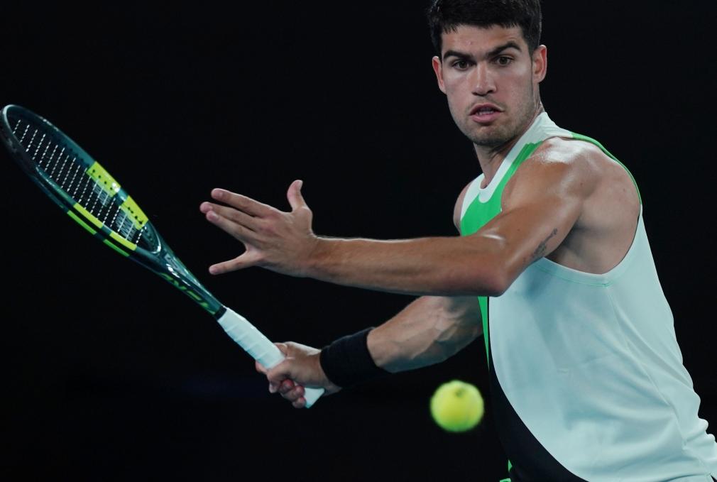 1月18日,阿爾卡拉斯在比賽中回球。新華社發(王申 攝)