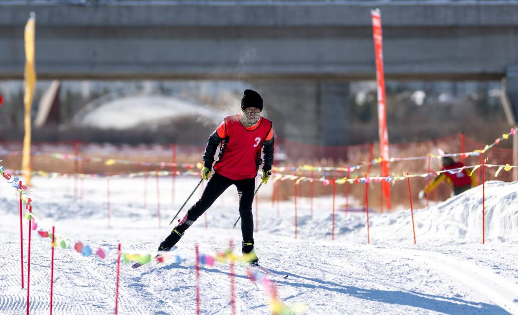 1月17日,陳春洋在呼倫貝爾海拉爾舉辦的第二屆全國城市越野滑雪挑戰賽中。新華社記者 連振 攝