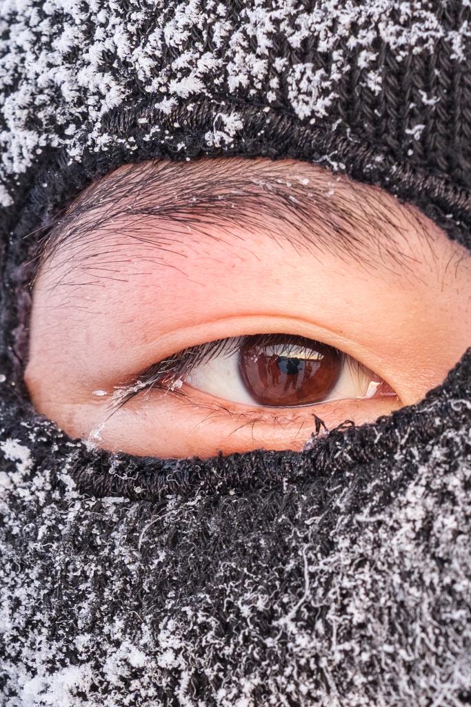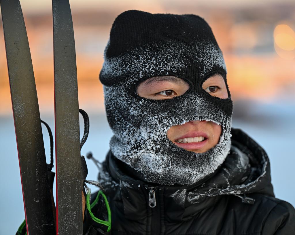 1月14日,在根河市城郊,結束訓練後的隊員宗美玲面部結滿冰霜。新華社記者 徐嘉懿 攝