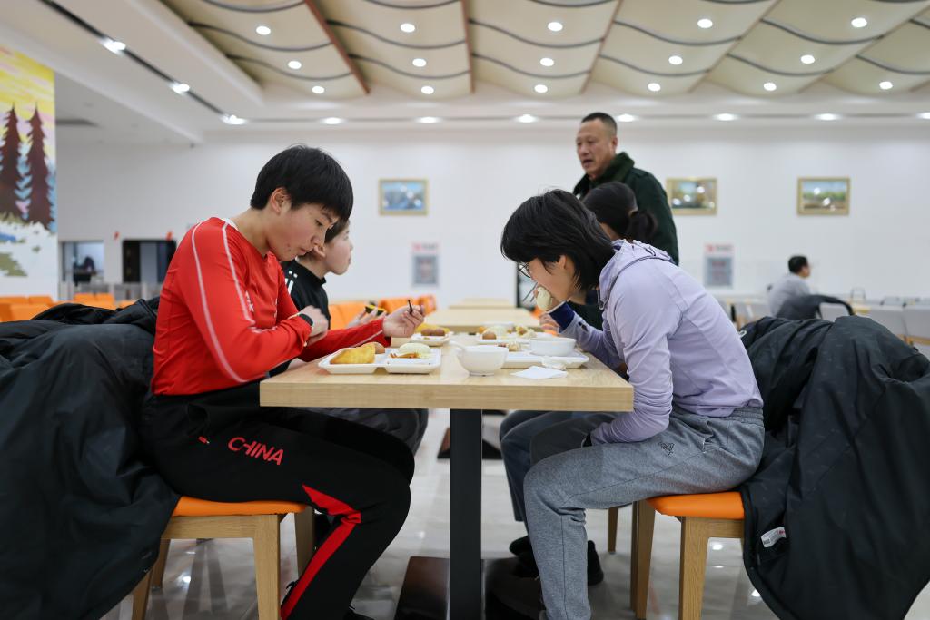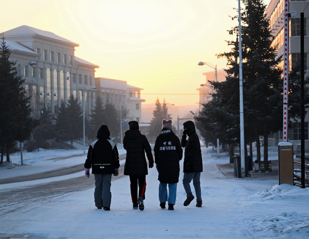1月14日,在根河市,隊員們前往食堂吃早餐。新華社記者 徐嘉懿 攝