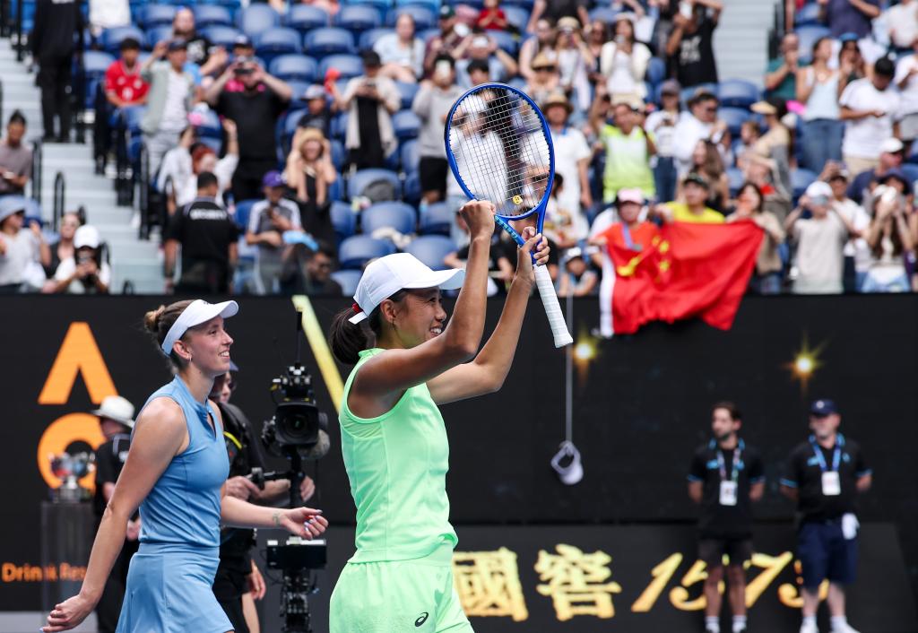 在31日進行的2026年澳大利亞網球公開賽女雙決賽中,張帥搭檔比利時選手梅爾滕斯以7:6(4)、6:4力克達尼麗娜(哈薩克斯坦)/克魯尼奇(塞爾維亞),奪得冠軍。這是張帥繼2019年澳網、2021年美網之後,職業生涯的第三座大滿貫女雙冠軍獎盃。