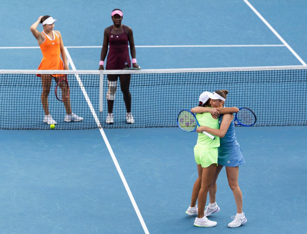 更難得的是,這是一對“臨時重組”的組合。梅爾滕斯笑稱,她們是最後一刻才組隊的,這其實是兩人重新搭檔後的第一站比賽。上一次在大滿貫搭檔,她們打進了2022年溫網女雙決賽。