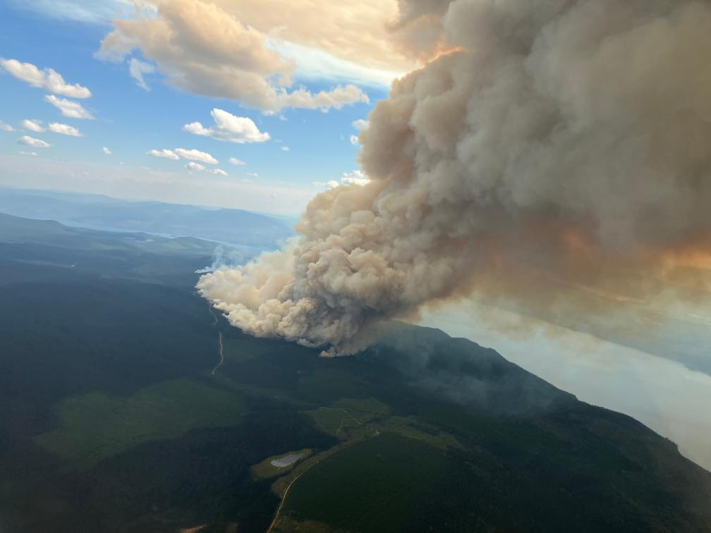 8月18日,在加拿大不列顛哥倫比亞省西北部地區,野火引發滾滾濃煙。新華社發(加拿大不列顛哥倫比亞省野火管理局供圖)