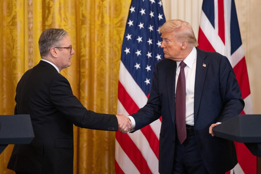 2月27日,美國總統特朗普(右)與英國首相斯塔默在華盛頓白宮出席聯合記者會。新華社記者胡友松攝
