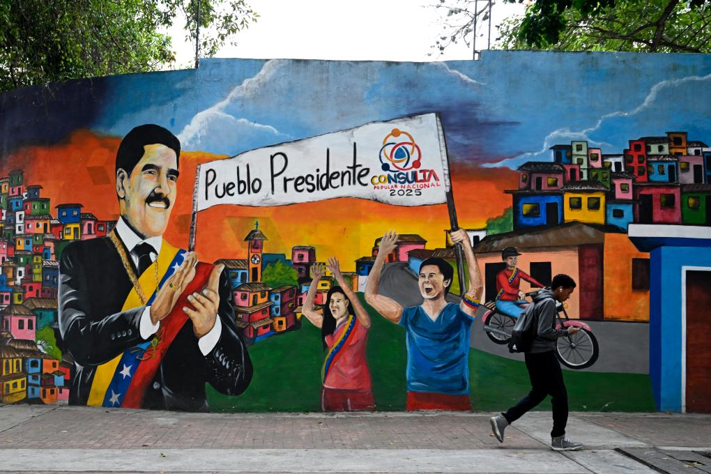 12月2日,行人從支持委內瑞拉總統馬杜羅的塗鴉墻前走過。