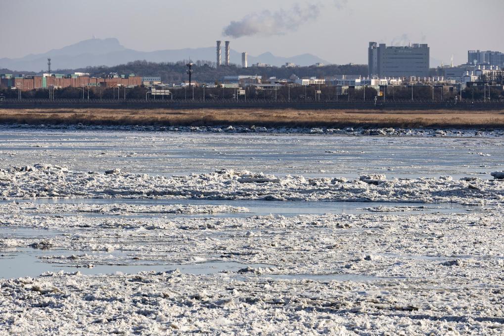 這是1月25日在韓國漢江京畿道流域拍攝的浮冰。新華社發(全休相攝)