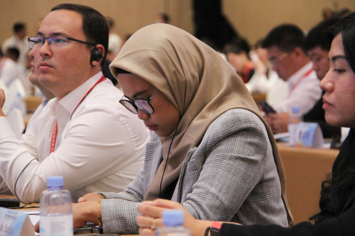 論壇間隙,烏茲別克斯坦航空公司北京辦事處負責人穆羅德·特羅波夫忙着同各國嘉賓溝通交流。