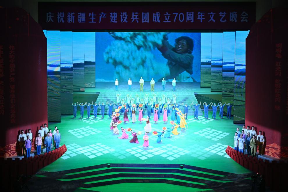 10月6日,慶祝新疆生産建設兵團成立70周年文藝晚會《光榮使命》在烏魯木齊文化中心大劇院舉行。