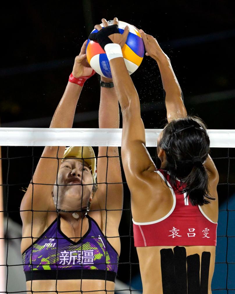 11月8日,新疆隊組合王婧哲(右)/夏欣怡在比賽中。