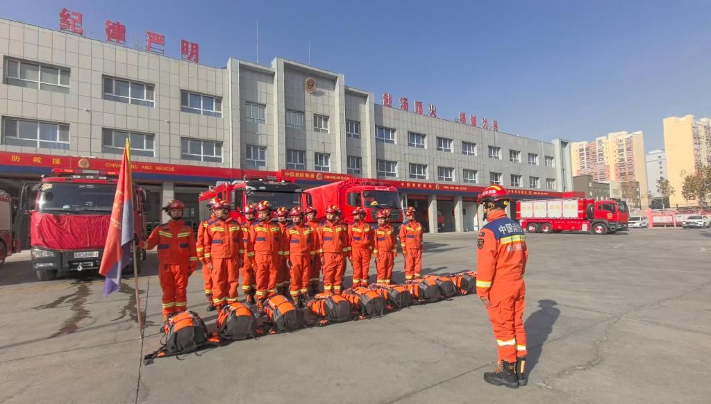 12月4日,新疆克孜勒蘇柯爾克孜自治州消防救援支隊在阿圖什市駐地集結趕往震中。新華社發