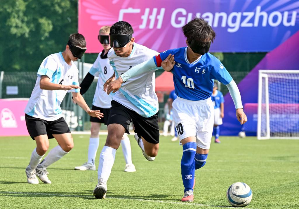 當日,在廣州舉行的全國第十二屆殘疾人運動會暨第九屆特殊奧林匹克運動會盲人足球項目男子組小組賽中,新疆隊2比0戰勝河南隊。