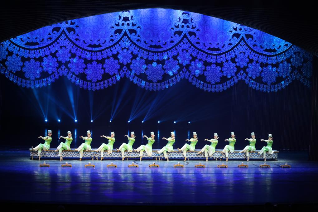 作品以“鑄牢中華民族共同體意識”為主線,通過《舞從天山來》《歌飛新絲路》《交響崑崙情》三大篇章,綜合運用舞蹈、聲樂、史詩吟唱等多種藝術形式,立體呈現了新疆各族文化的多彩風情與時代交響。其中,新疆民歌《花兒為什麼這樣紅》用經典旋律串聯起各民族共同情感,舞蹈《陽光下的麥蓋提》以金獎實力展現新疆人民奮發向上的精神面貌,全方位呈現新疆多彩文化。