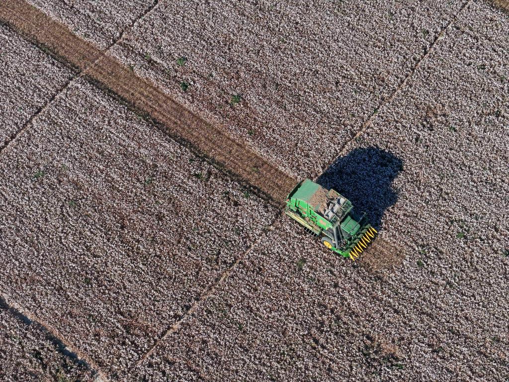 金秋時節,新疆生産建設兵團1100多萬畝棉花陸續進入采收季。田間“白浪”翻滾,機器轟鳴,團場職工抓住晴好天氣,收穫棉花。