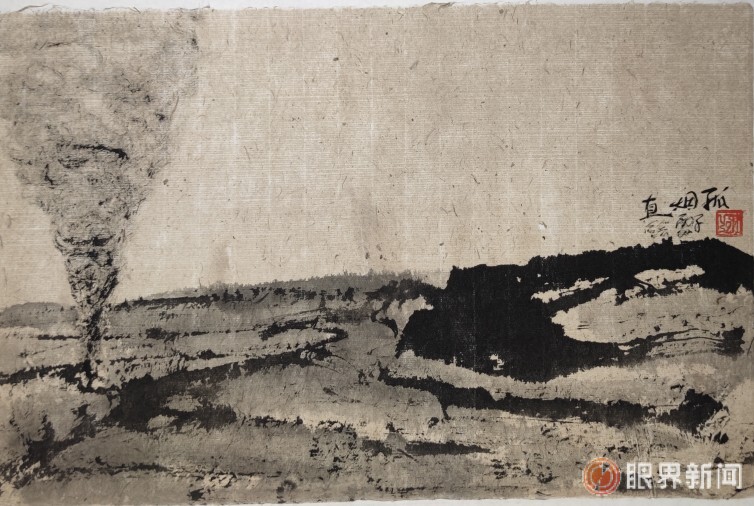 韓子勇中國畫作品《孤煙直》。記者趙劍塵 攝