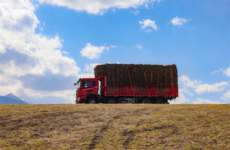 8月26日,運輸車輛滿載牧草運往儲存地。