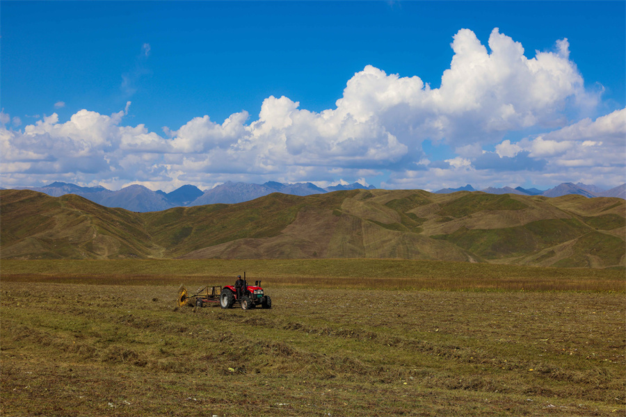 阿吾讚夏牧場牧草迎來一年一度的打草季。