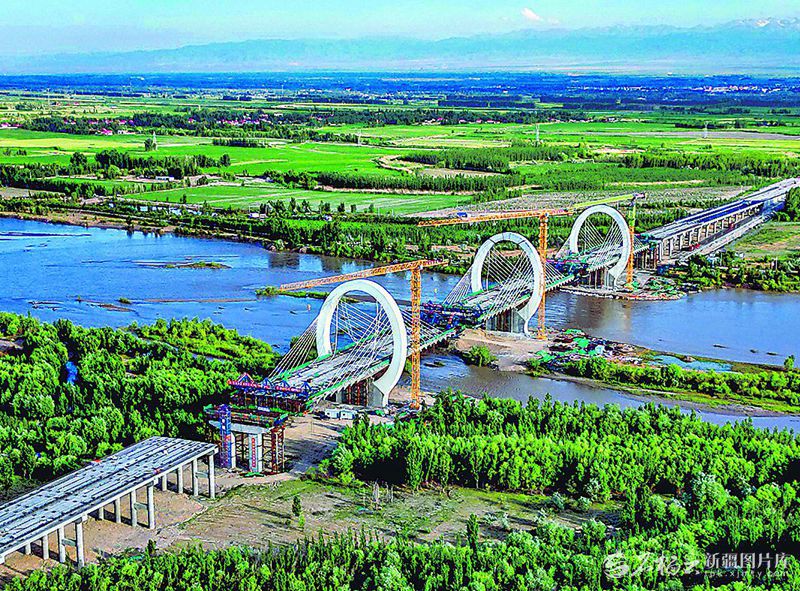 伊犁河三橋建設現場(5月21日無人機攝)。蔡增樂 攝