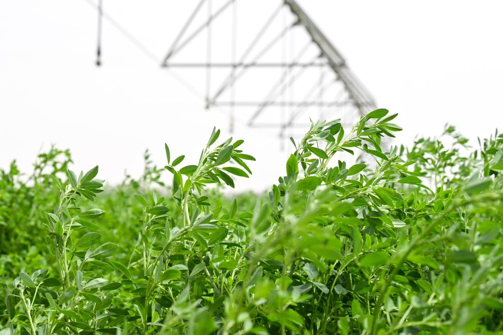 這是在新疆和田地區和田縣千畝苜蓿種植示範基地拍攝的苜蓿(9月9日攝)。新華社記者 丁磊 攝