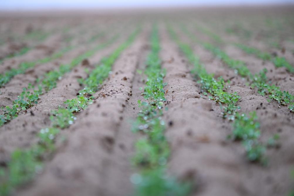 這是在新疆和田地區策勒縣4萬畝苜蓿種植基地拍攝的苜蓿苗(9月9日攝)。新華社記者 丁磊 攝