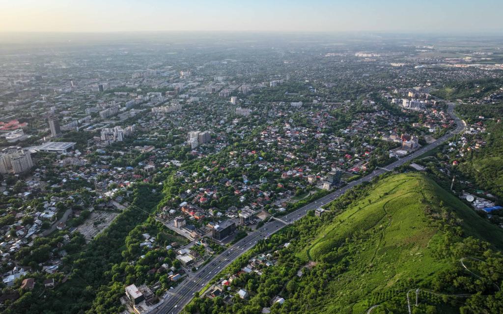 這是5月13日拍攝的哈薩克斯坦阿拉木圖市區風光(無人機照片)。