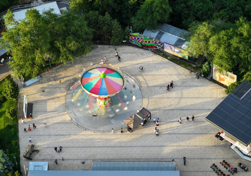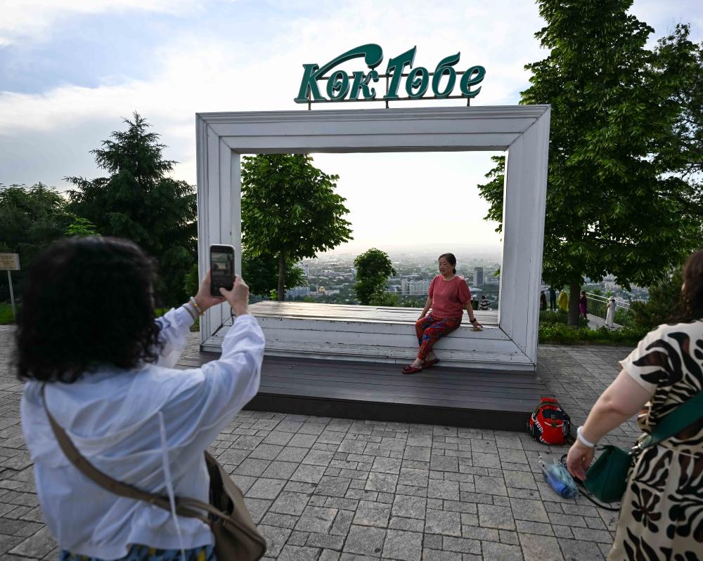 5月13日,中國游客在哈薩克斯坦阿拉木圖的科克托別山游玩。