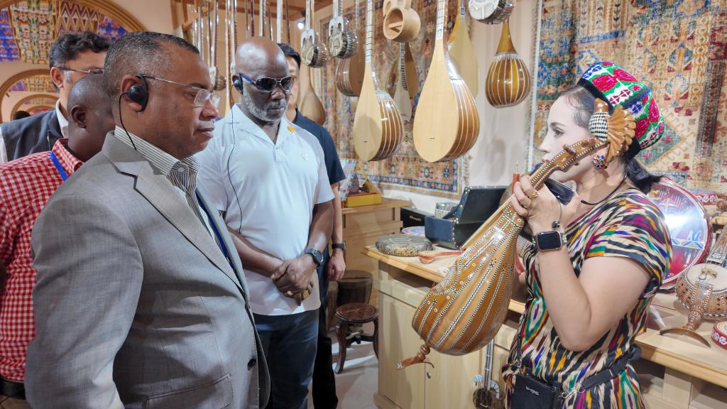 參訪途中遇到的新疆各族青年,令毛裏求斯議員巴裏克什納·巴巴吉深受觸動。無論是樂器村的制琴工匠,還是古城內翩然起舞的舞蹈演員,每一個年輕人都笑容陽光、活潑昂揚。
