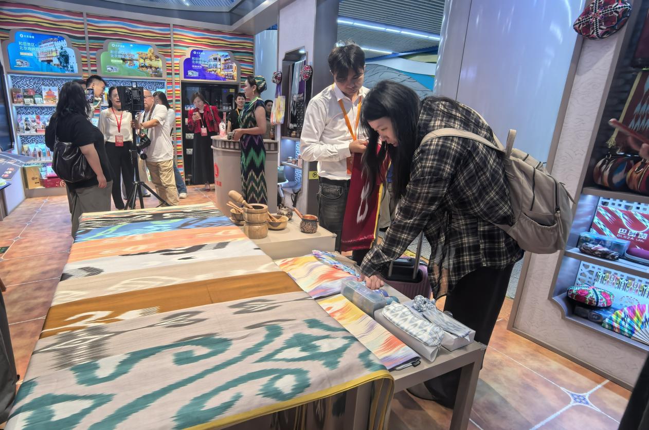 游客在“和田地區北京地鐵城市客廳”購買商品。