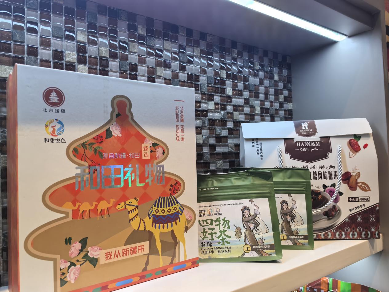 “和田地區北京地鐵城市客廳”展示的和田特色産品。