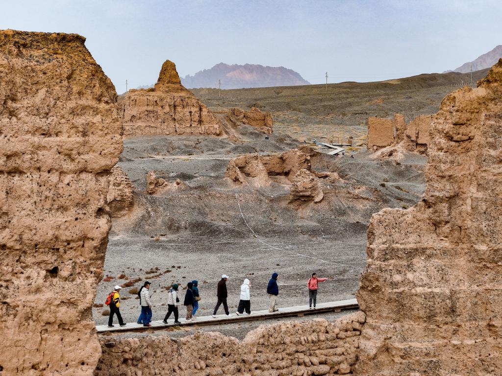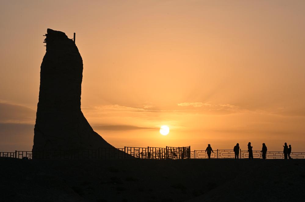 “克孜爾尕哈”意為“紅色哨卡”。夕陽下,這座漢代軍事設施的夯土墻體被映照得棱角分明,泛着淡淡的金紅色。“站在這裡,仿佛看到了當年的烽火傳訊。”一名游客感慨地説。