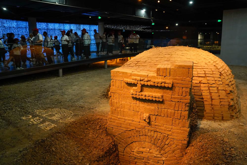 而在地上,龜茲博物館也於今年面向游客免費開放。龜茲博物館館長馬麗麗介紹:“為讓館藏文物活起來,地上、地下兩館相依,既以豐富館藏鋪展龜茲文化長卷,又將庫車友誼路墓群的歷史肌理原真呈現。”