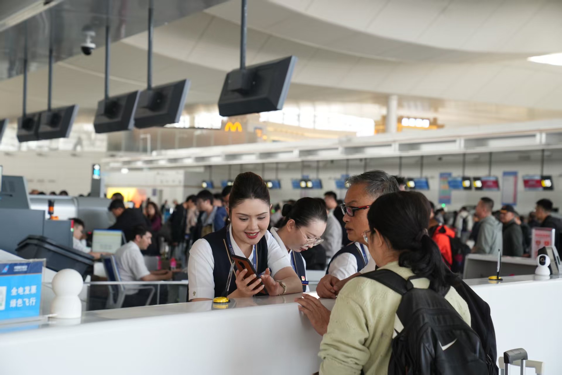 國慶首日,晨曦微露的烏魯木齊天山國際機場已熱鬧起來。為讓旅客在出行途中感受濃厚節日氛圍、豐富出行體驗,南航新疆分公司精心策劃開展主題系列活動,以貼心服務與暖心舉措,為祖國華誕增添喜慶色彩,為旅客旅途注入滿滿溫情。