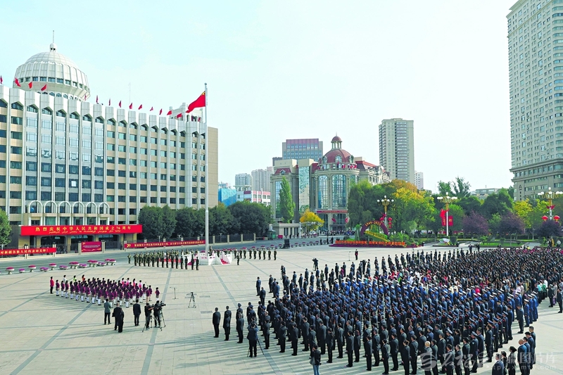新中國76年來,黨領導人民自力更生、接續奮鬥,取得彪炳史冊的輝煌成就。今年國慶節恰逢自治區成立70周年。70年來,在黨中央堅強領導下,新疆面貌發生了翻天覆地的巨大變化。進入新時代,以習近平同志為核心的黨中央引領新疆各項事業取得歷史性成就、發生歷史性變革,各族人民像石榴籽一樣緊緊抱在一起、昂首闊步走在中國式現代化道路上。參加儀式的各族幹部群眾&&,新的歷史起點上,將深入學習貫徹習近平總書記聽取自治區黨委和政府工作匯報時的重要講話精神和對自治區成立70周年的重要題詞精神,完整準確全面貫徹新時代黨的治疆方略,聚焦社會穩定和長治久安總目標,進一步鑄牢中華民族共同體意識、推進中華民族共同體建設,團結一心,感恩奮進,為建設團結和諧、繁榮富裕、文明進步、安居樂業、生態良好的社會主義現代化新疆貢獻更大力量。