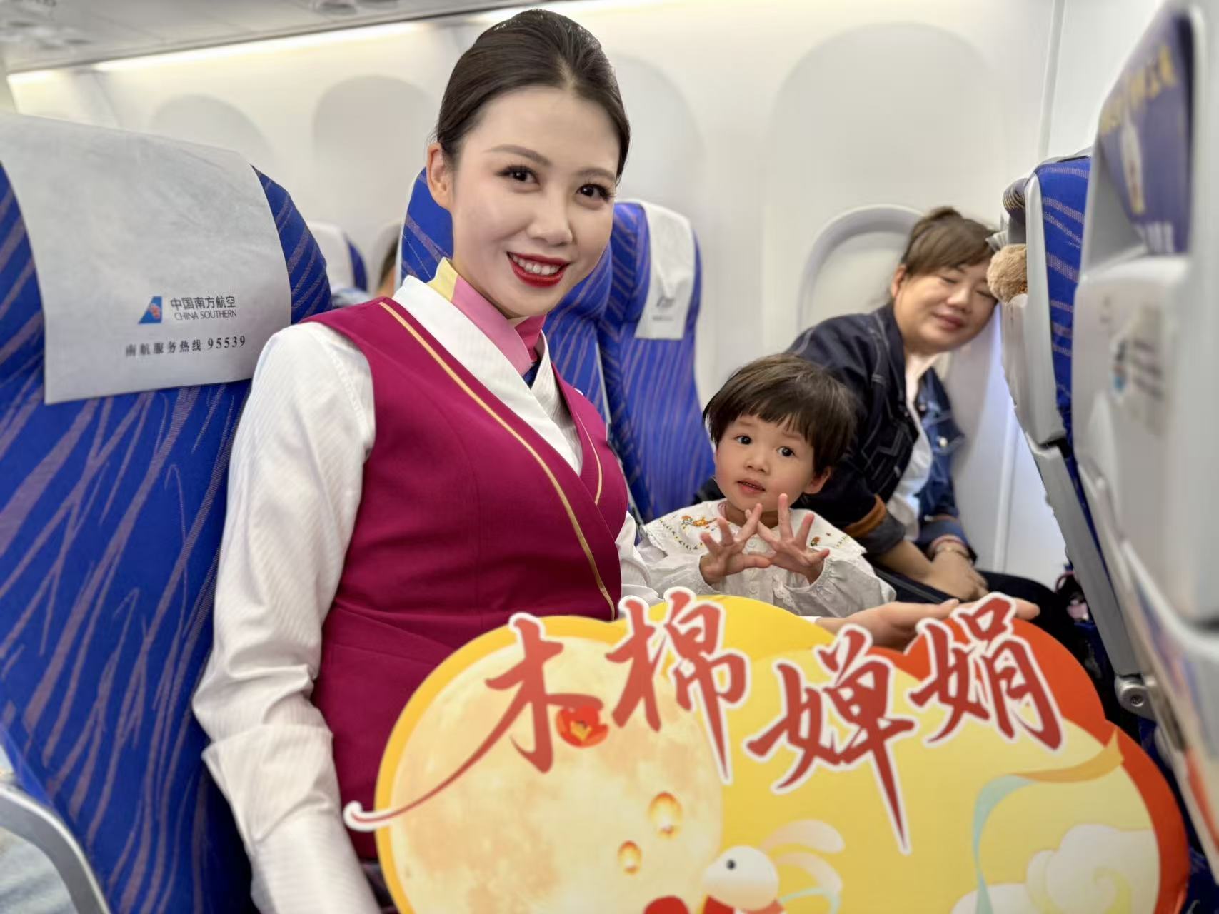 10月4日,南航新疆分公司在CZ6957烏魯木齊-長沙、CZ6893烏魯木齊-天津等多個航班上組織“木棉嬋娟”中秋主題活動,通過溫馨廣播、猜謎互動、知識問答等活動,在萬米高空中為旅客營造濃厚的節日氛圍,提前送上中秋的美好祝福。