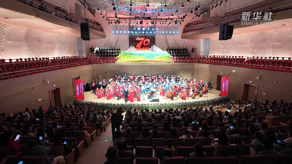 本場音樂會以“鑄牢中華民族共同體意識”為主線,融合交響樂、民樂、合唱等多元形式,通過經典曲目創新演繹與新創作品交相輝映,奏響莊重熱烈、歡樂祥和、團結奮進的基調,慶祝新疆維吾爾自治區成立70周年。