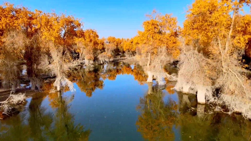 沙雅縣位於塔裏木河中上游,這些分佈於河流兩岸的胡楊林不僅生命力頑強,而且有效阻隔了塔克拉瑪幹沙漠的侵襲。