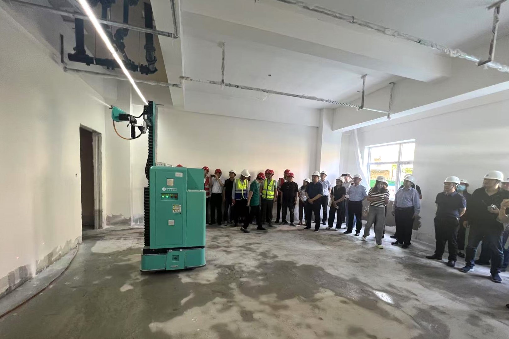 走進項目建設現場,這裡曾活躍着一組特殊的“建設者”——打磨機器人與噴塗機器人組成的“雙機器人協同作業系統”。在精裝修階段,室內噴塗機器人基於BIM模型規劃路徑,實現毫米級軌跡控制,噴塗均勻度超90%,較人工節省10%塗料、壓縮25%工期;打磨機器人則憑藉激光定位與自適應磨頭,消除人工誤差,效率提升50%,且粉塵收集率達80%,既保障施工質量,又守護工人健康。