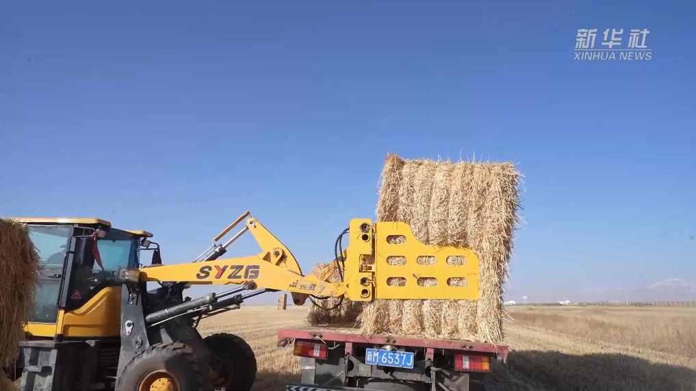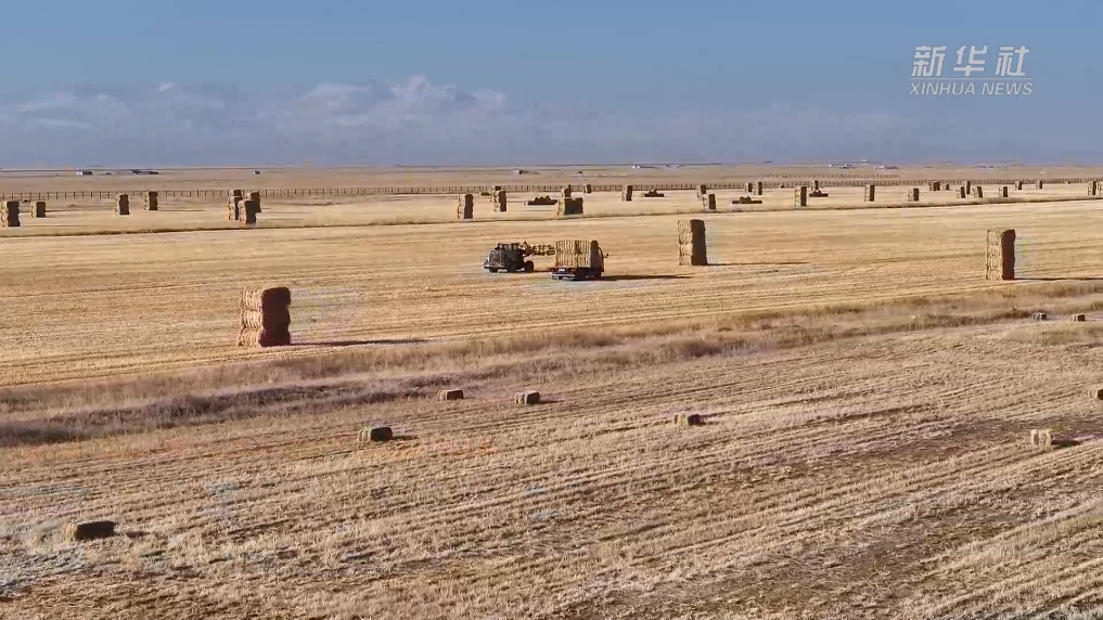 面對新一輪強冷空氣即將來臨,新疆巴音郭楞蒙古自治州各地搶收飼草料為牲畜過冬備足“口糧”。