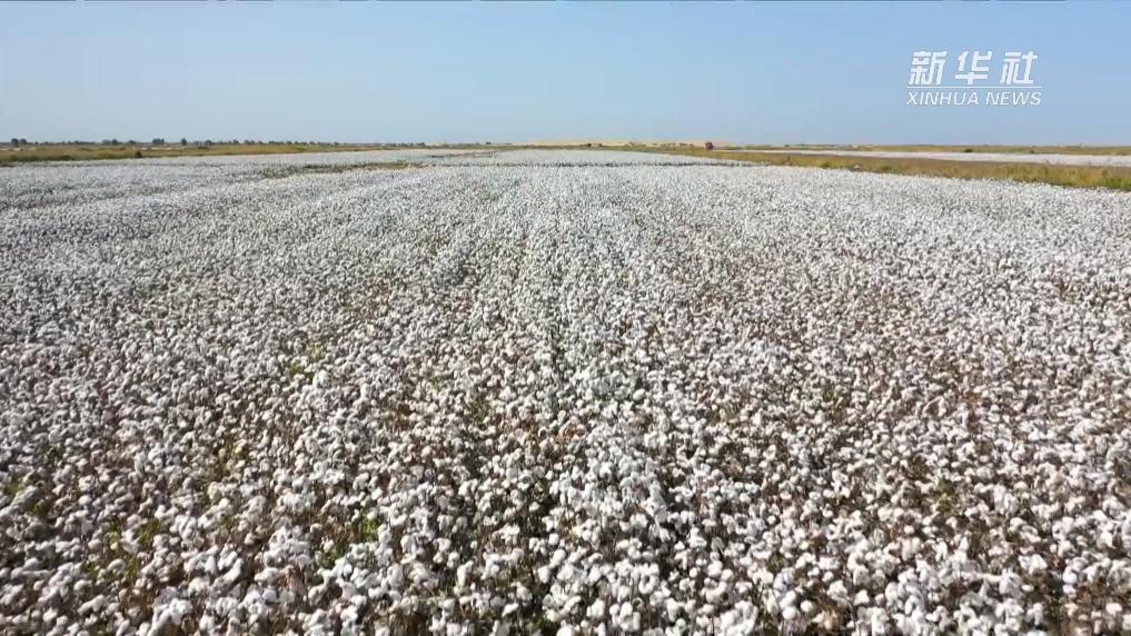 金秋十月,新疆阿克蘇地區沙雅縣187萬畝棉田迎來采收高峰,雪白的棉海一眼望不到頭。數&&型採棉機穿梭其間,朵朵棉花被採棉機採摘、收集、打包、出倉,棉田裏一派豐收繁忙景象。