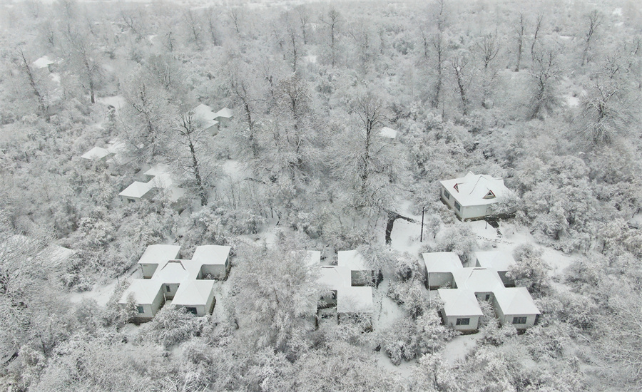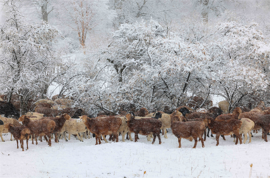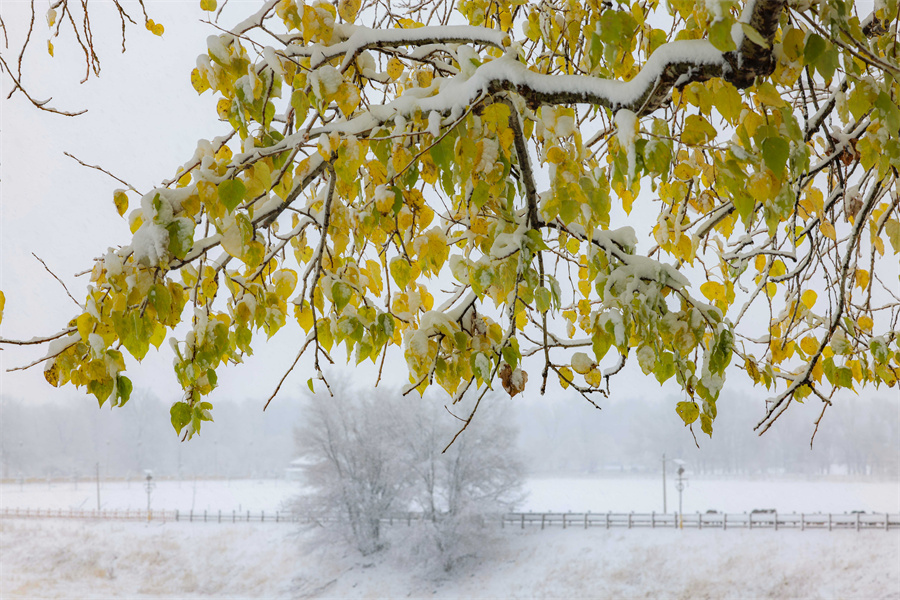 11月5日,新疆新源縣迎來一場降雪,紛飛的雪花為那拉提披上銀白盛裝。草原鋪銀、林海裹素、牧群綴雪,而部分樹木的斑斕秋色尚未褪盡,雪的清冽與秋的絢爛碰撞交織,暈染出一幅絕美的過渡畫卷。
