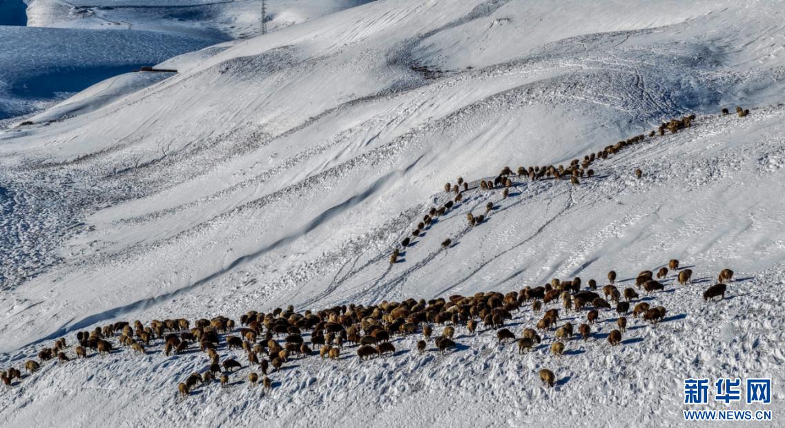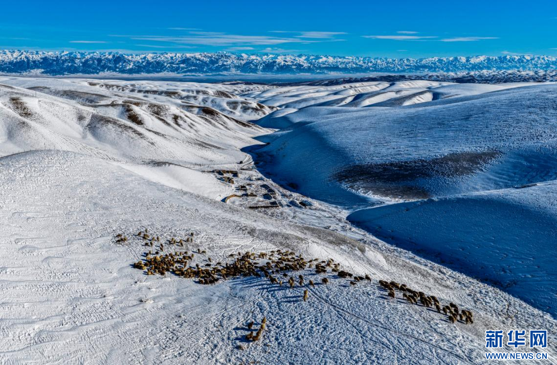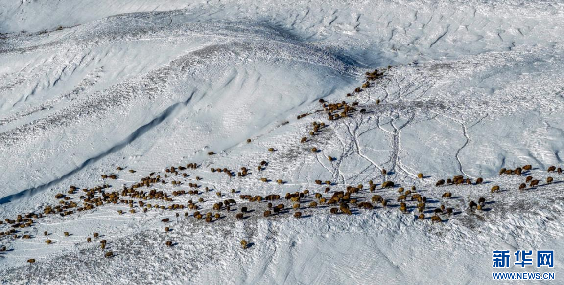 加吾爾山的雪,是自然的饋贈,牛羊在雪地裏游牧的身影,是流動的風景。(阿依肯·吾龍別克 南建軍)