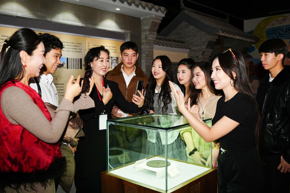 11月28日,在新疆中哈霍爾果斯國際邊境合作中心中國文化館,來自哈薩克斯坦的青年參觀中國歷史文化展。新華社記者 徐宏岩 攝