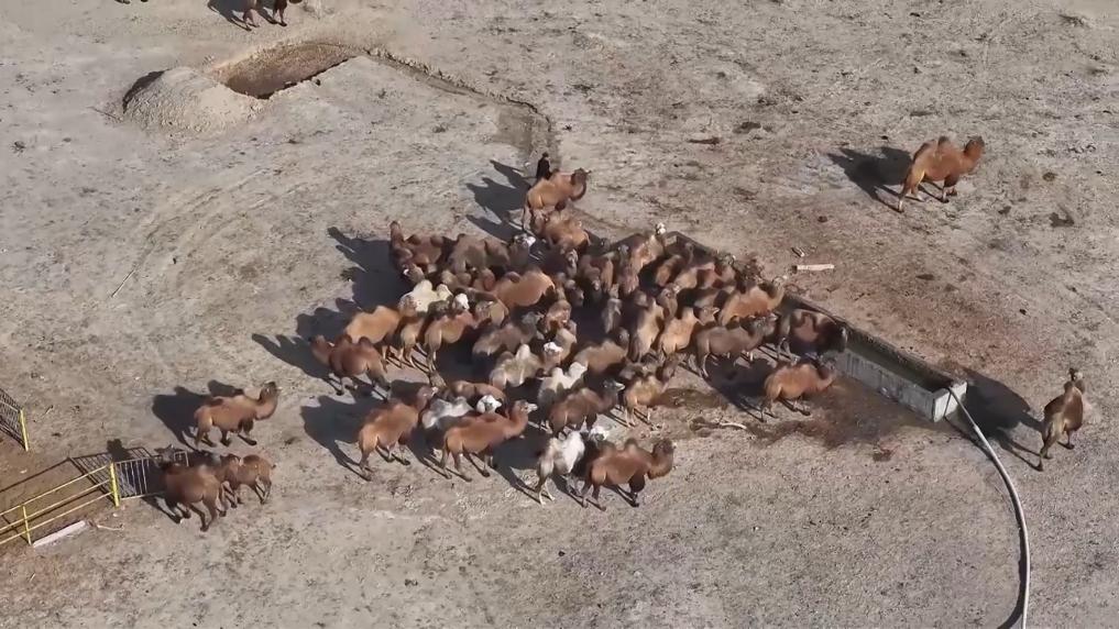 新疆巴州:戈壁灘上駱駝分群忙