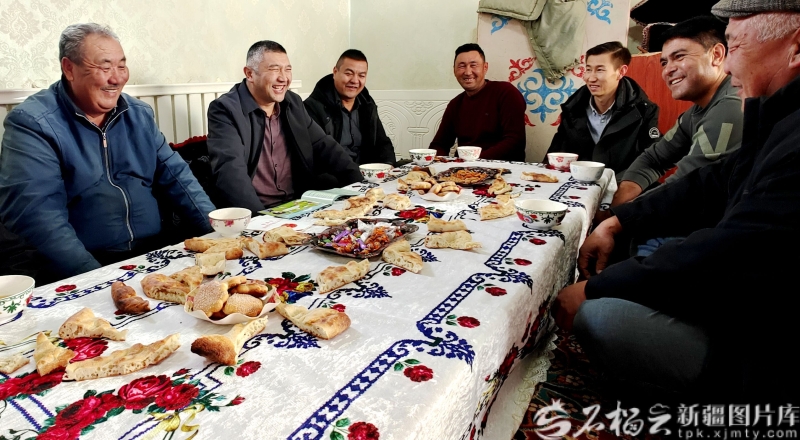 12月13日,阿曼太·斯勒肯別克(左二)在鞏留縣塔斯托別鄉入戶宣講,用身邊事講解草原保護法規,讓牧民增強生態保護意識。石榴雲/新疆日報記者 楊斌 攝