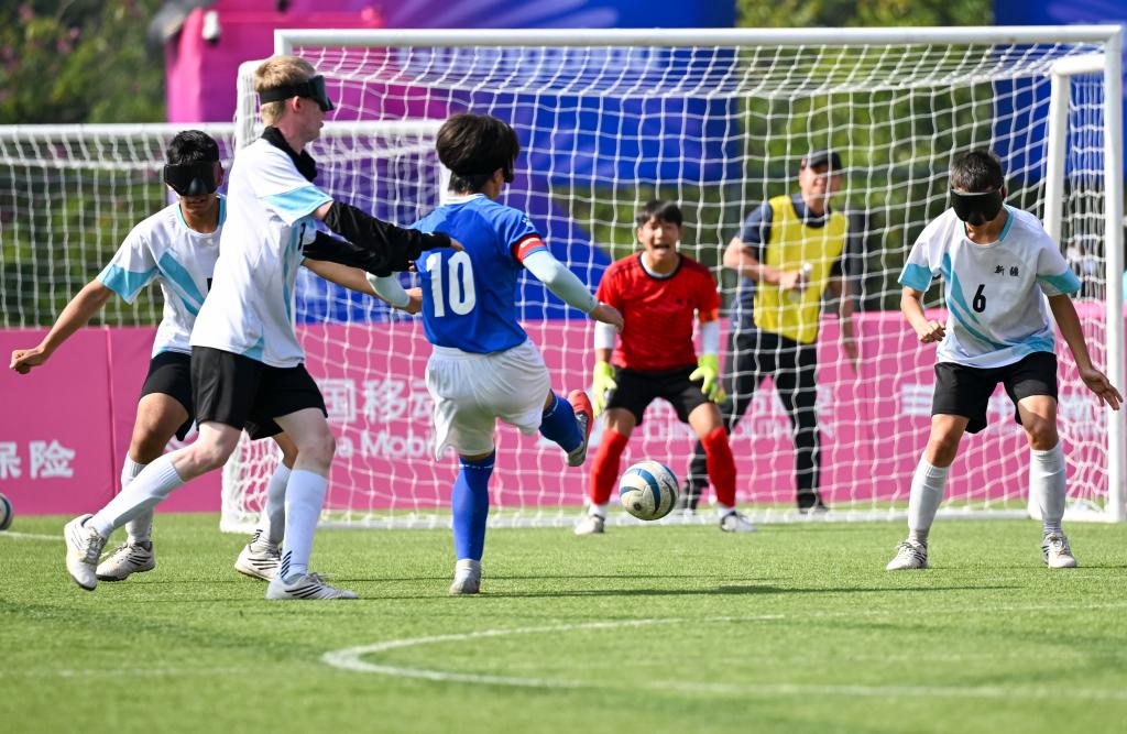 當日,在廣州舉行的全國第十二屆殘疾人運動會暨第九屆特殊奧林匹克運動會盲人足球項目男子組小組賽中,新疆隊2比0戰勝河南隊。