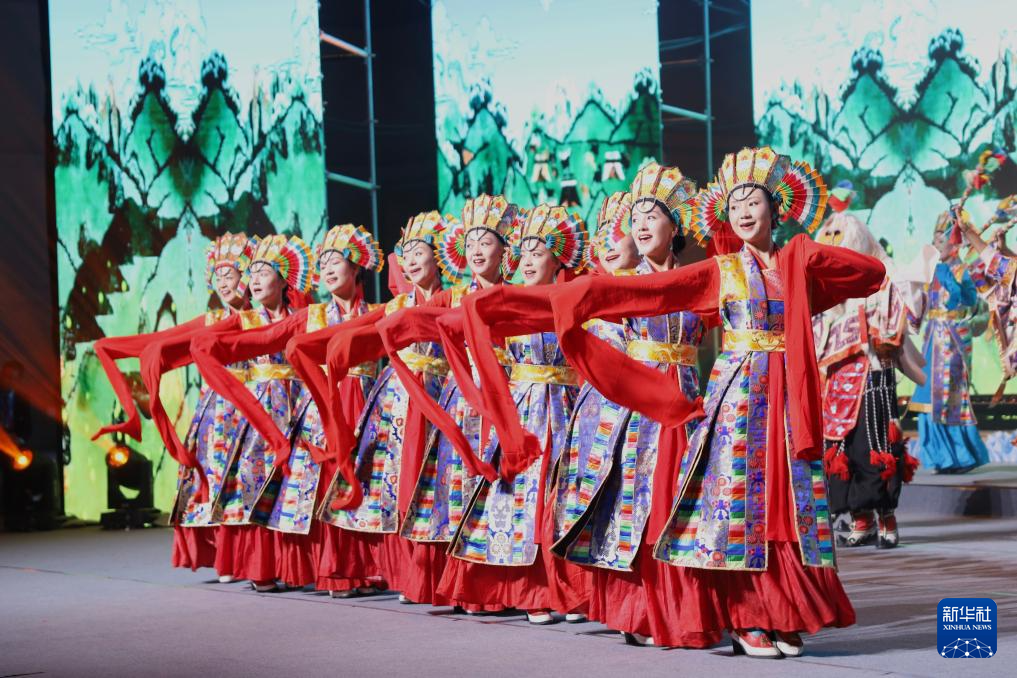 10月18日,演員在啟動儀式上進行藏族舞蹈展示。新華社發(李騰攝)