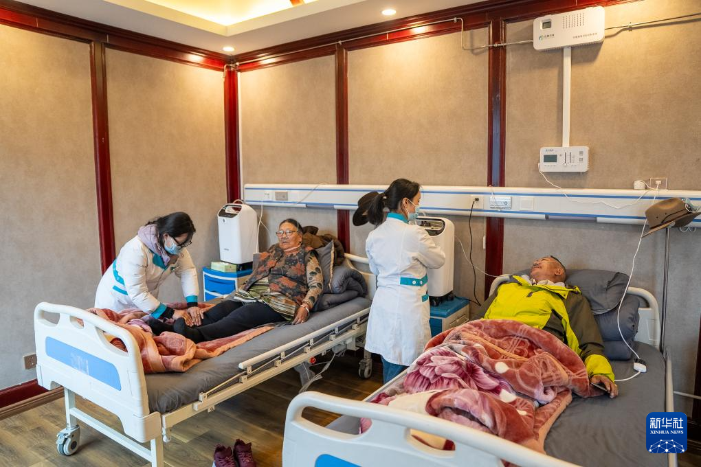 4月25日,老人們在那曲市色尼區老年人日間照料中心做理療。新華社記者 丁增尼達 攝
