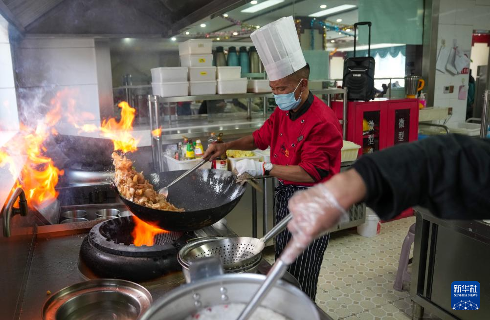 4月25日,那曲市色尼區老年人日間照料中心的廚師在製作午餐。新華社記者 晉美多吉 攝